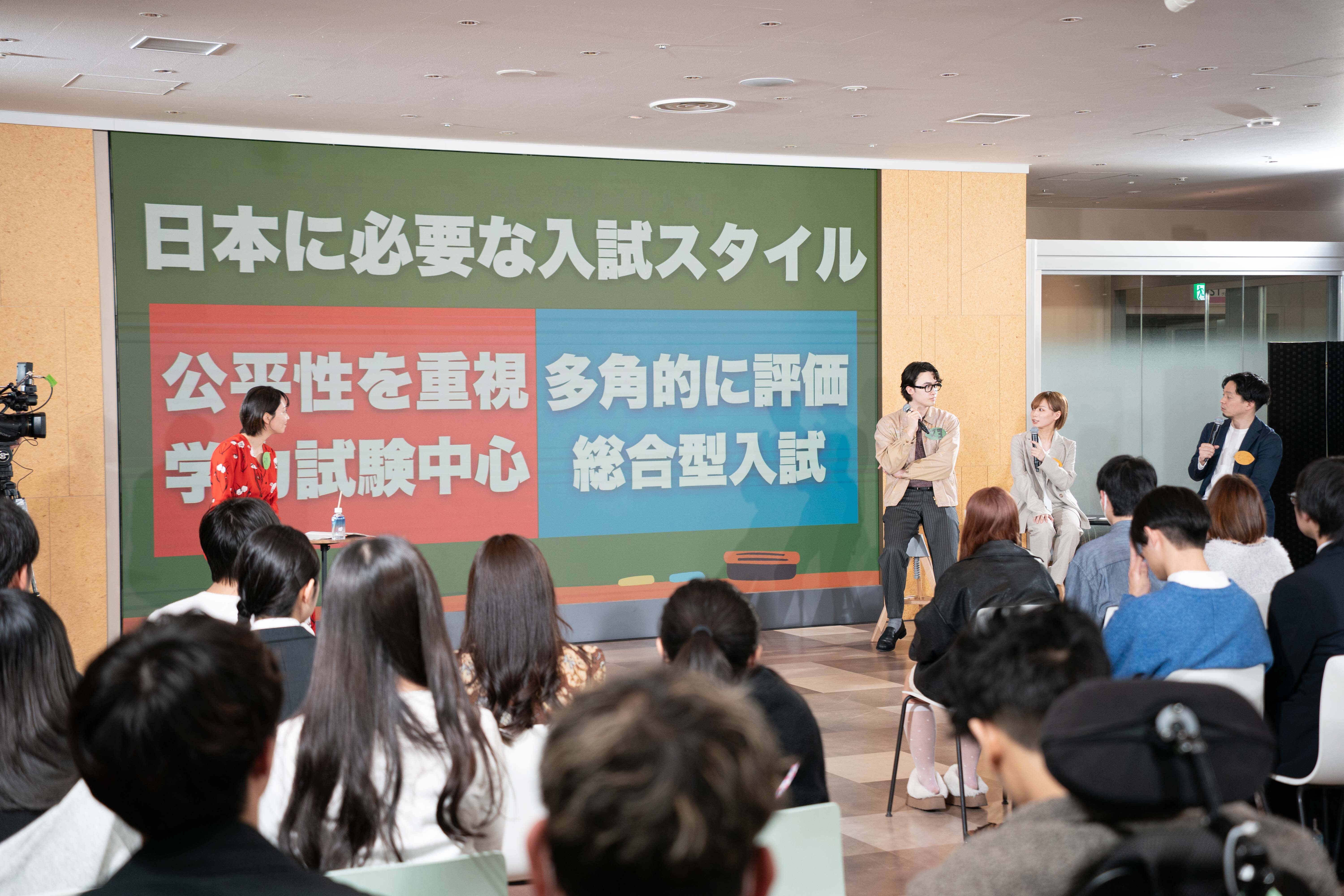本イベントは、TBSが推進するSDGsプロジェクト「地球を笑顔にする」の一環として開催された若者との共創イベント。「理想の教育とは何か」を参加者全員で語り合う対話型の場として、元SexyZoneのマリウス葉さん、元BiSHのモモコグミカンパニーさんとともに山本が登壇しました。